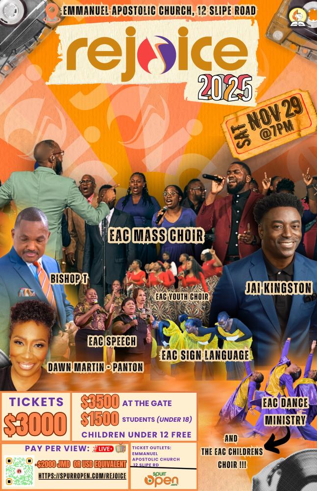 The Worship Arts Ministry (WAM) of the Emmanuel Apostolic Church, 12 Slipe Road, hosts its 39th annual staging of its premiere worship experience REJOICE, on Saturday, November 29, 2025.