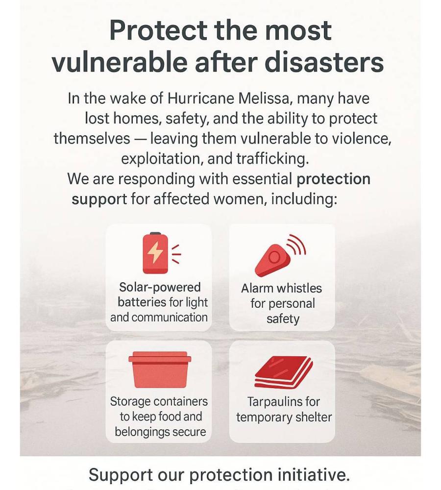 Donate today and stand with us in protecting and empowering women affected by Hurricane Melissa.