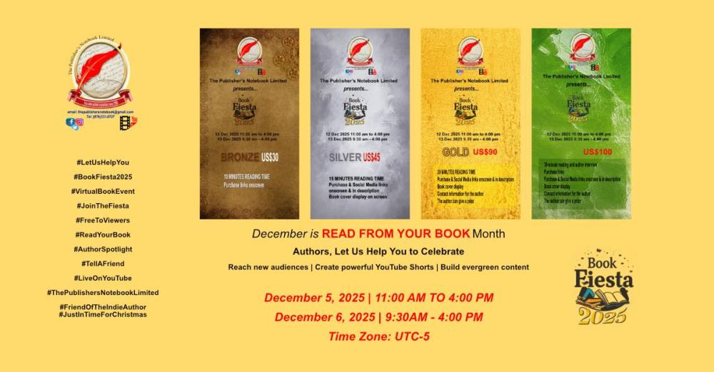 Whether you’re launching a new book or showcasing a published title, you’re invited to grow your audience and connect with readers at BOOK FIESTA 2025 - a virtual annual event proudly hosted by The Publisher’s Notebook Limited.